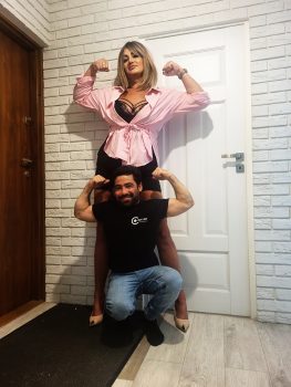 I’ve had a session with Alice in Istanbul some time ago for the first time. Communication was easy and quick. When I arrived at the location. We started with an armwrestling match, which she won very easily. She is obviously trained but she also had a very big size advantage over me during wrestling. She has a great combination of size, strength and training/techniques. She is also very nice and a pleasant person to be around.