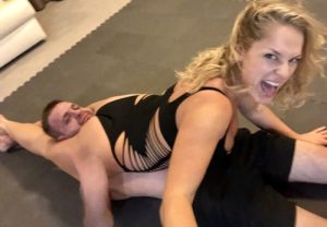 We agreed on a mix of competitive and domination wrestling. At the beginning of each fall she quickly subdue me with her strength and put me in various holds impossible to escape, and forced me to worship her wonderful body. She was really taunting during the wrestling and it was great to see how she manage to make me her bitch, physically and verbally.