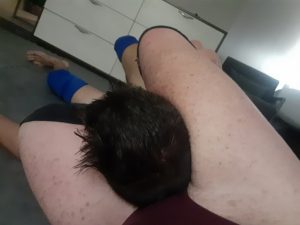 The match : I’m not gonna reveal too much, but we tied 2-2. She has such powerful legs. She got on top of me, and got me in a kind of headlock/smother. I was in pain and couldn’t breathe, I had to submit. Later she got me in a bodyscissor, and gradually squeezed. That had me moaning out loud. As put my arm on her leg to try and pull her off, I could feel she had so much more power, if she wanted to use it. That was her 2nd submission! How did I get my 2 subs? I’m gonna let you work that out! Haha! She’s a blast and a sweetheart! Highly recommended