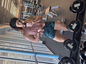 We then moved on to a curl challenge with some dumbbells. She proceeded to beat me there as well by a few reps. She is honestly just ridiculously strong.