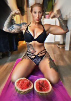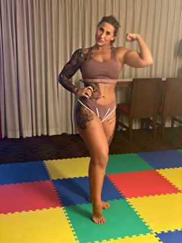 I have had several sessions with Warrior Amazone and we wrestled Freestyle pin wrestling and in every session and every match she has not only won every match but crushed me flat.. I am 5’9″ 200 lbs. and wrestled up to the college level and have some martial arts training and she has made quick work of me, and when gets her tree trunk legs on me it is lights out, highest recommendation.